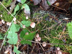 Psilocybe baeocystis – Found growing in cheery groups along the tops of rotting logs, mounds of peat or mulch, this dark-brown capped mushroom also goes by the names of blue bell and bottle cap.